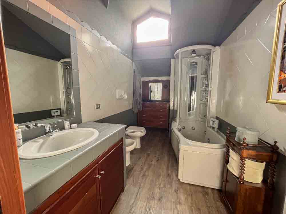 al piano superiore due camere matrimoniali con balcone, grande bagno con vasca idromassaggio.