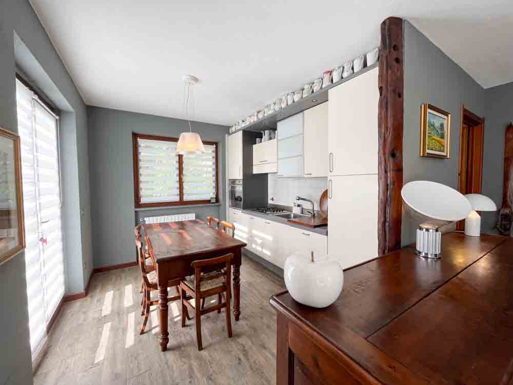 L’appartamento ubicato al piano terra ed è disposto su due livello.