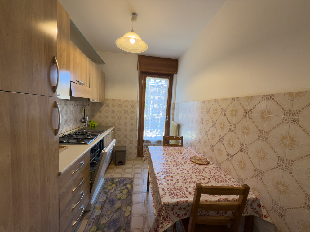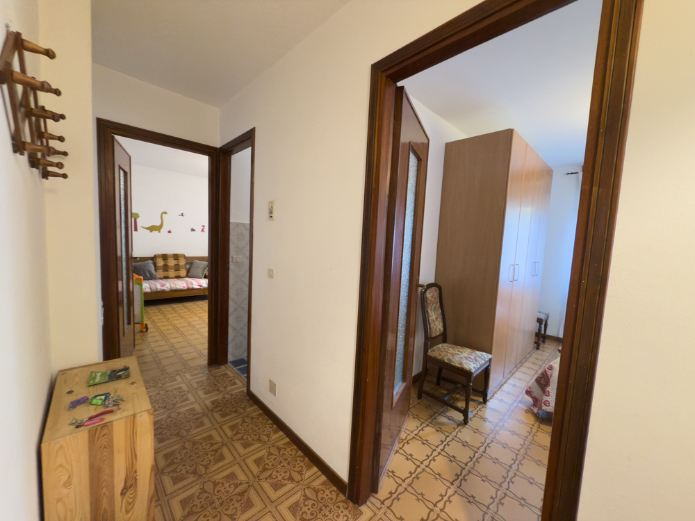 Nel cuore pulsante del paese, all’interno della zona pedonale, appartamento in vendita con una vista aperta, il sole che entra da mattina a sera e un grande terrazzo di circa 80 mq che diventa un vero e proprio prolungamento della casa. L’abitazione, necessita di una rinnovata ma il layout interno è il classico delle case degli anni Ottanta, con ambienti ampi, luminosi e ben distribuiti. L’ingresso si apre su un soggiorno spazioso con porta finestra affacciata sul terrazzo, esposto a est, sud e ovest, il cucinino è adiacente al soggiorno con porta finestra, due grandi camere matrimoniali e un bagno finestrato completano la disposizione interna.