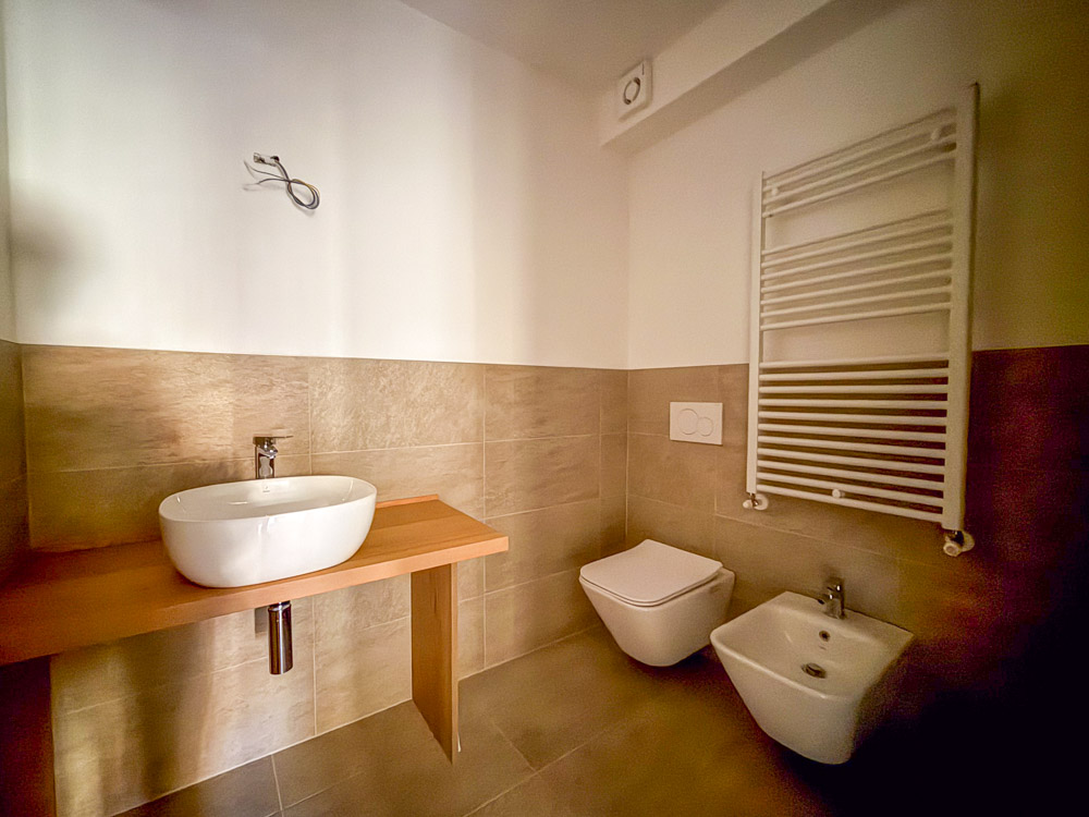 Soluzione ’A’ piano terra, trilocale di 95 mq composto di salone, cucina a vista, due camere matrimoniali e due bagni.